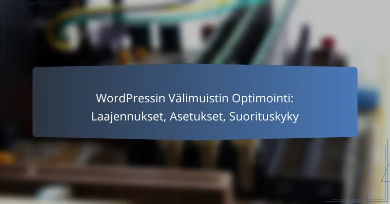 Välimuisti tallentaa usein käytettyjä tietoja, mikä vähentää palvelimen kuormitusta ja nopeuttaa sivuston lataamista. Voit käyttää välimuistilisäosia, kuten W3 Total Cache tai WP Super Cache, jotka tarjoavat helppoja asetuksia välimuistin hallintaan.